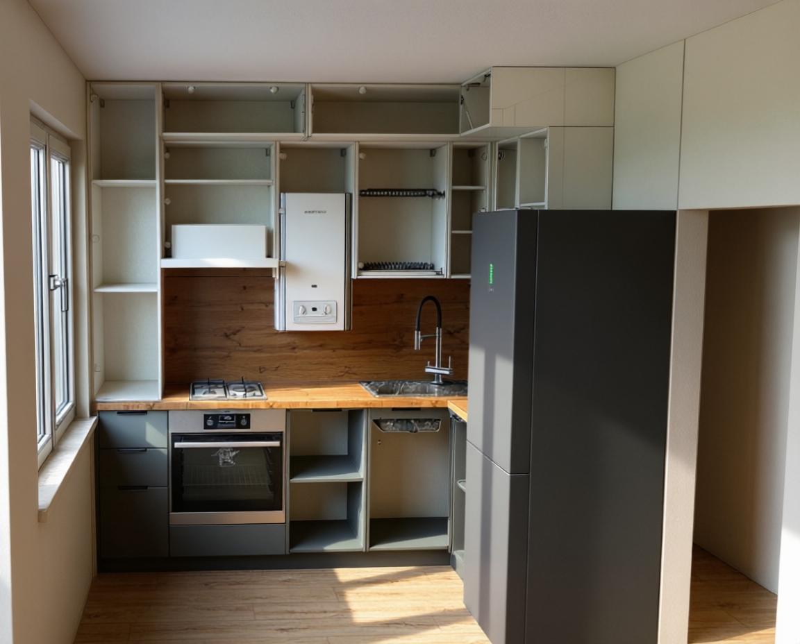 -Окончательный проект. После замера мы готовим точный, итоговый проект и окончательный расчет. Его мы и утверждаем с вами перед запуском в производство.Итог: вам не нужно быть архитектором! Просто сфотографируйте свою кухню и набросайте от руки, где что примерно хотите расположить. А всю сложную работу мы берем на себя.Хотите так же? Напишите нам и прикрепите фото вашего помещения и ваши идеи! Наш дизайнер бесплатно проконсультирует и подготовит для вас предварительный расчет